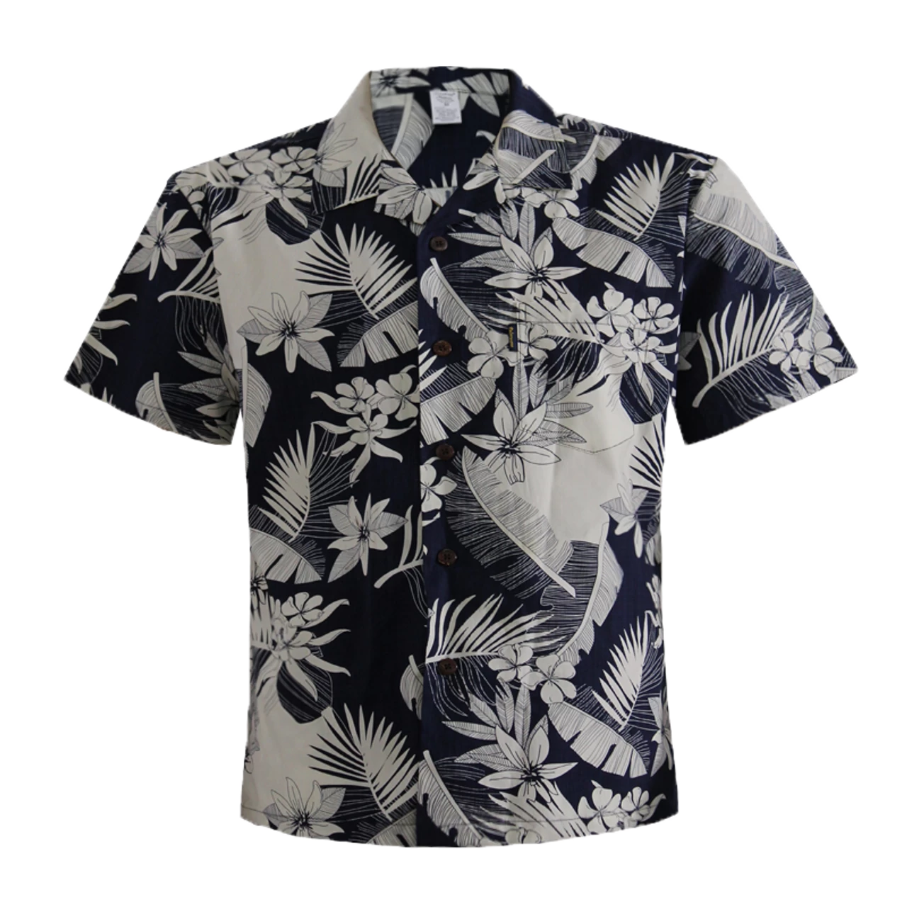 Men’s Cotton Aloha Shirt – Navy with Cream Floral