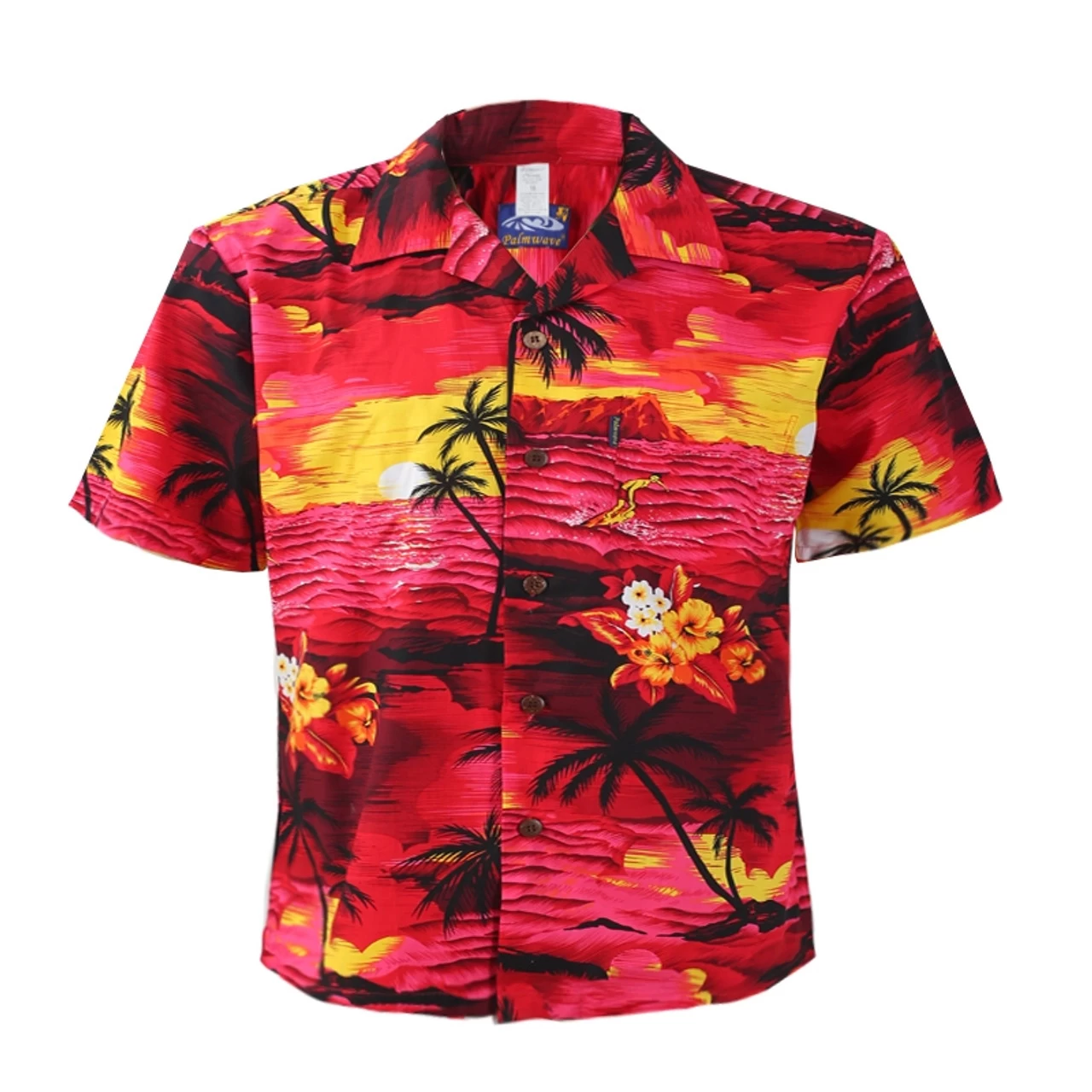 100% cotton Aloha Shirts have matching pocket and coconut buttons.