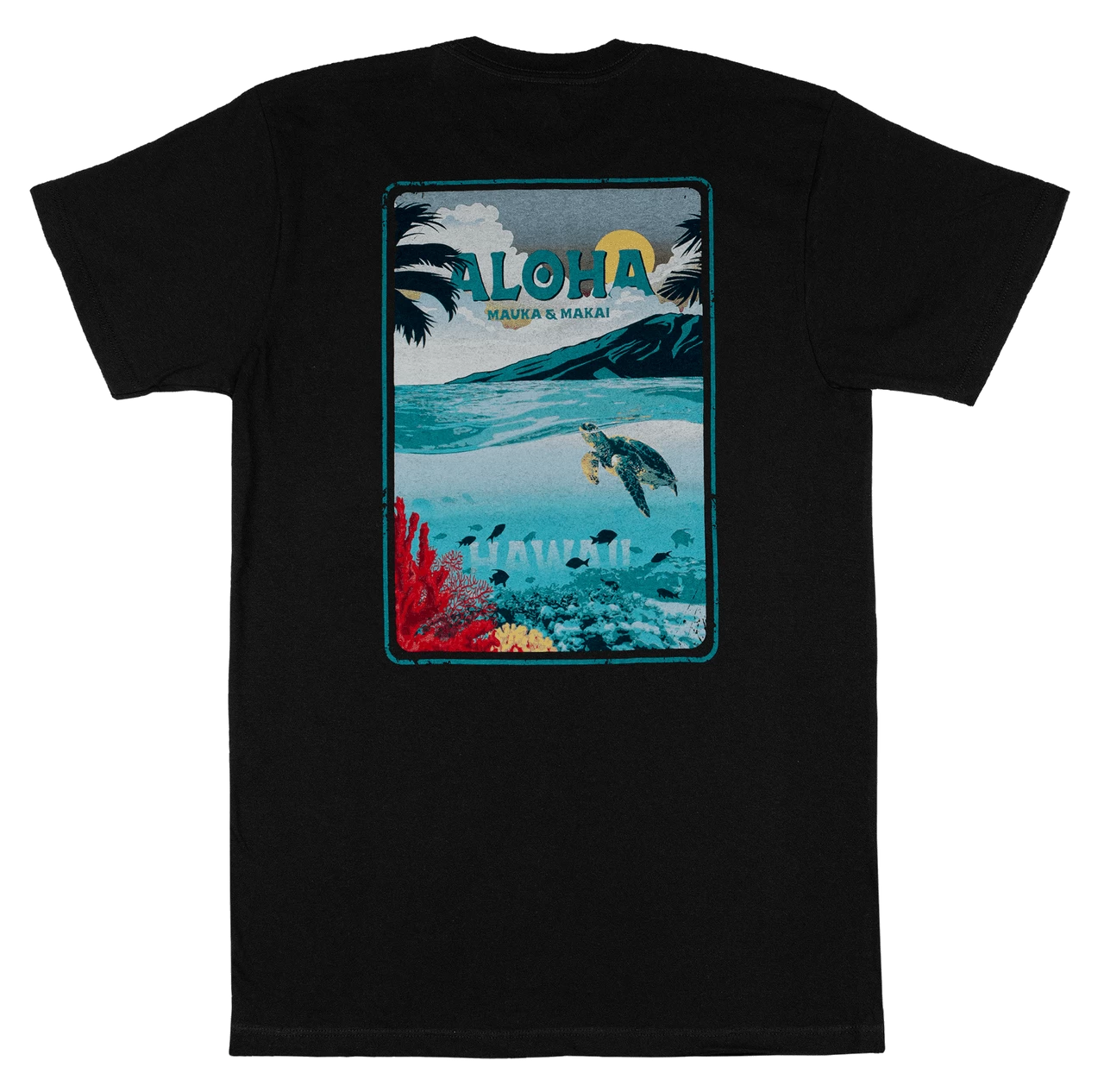 “Mauka & Makai” – Mountains and Oceans: Check out this artistic imagining of the Hawaiian Sea Turtle’s tranquil day!