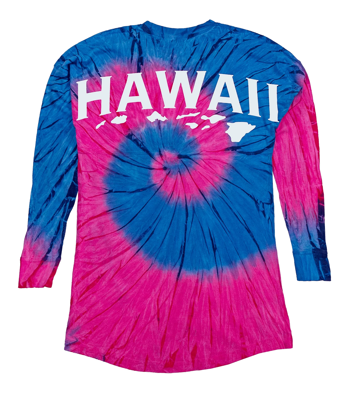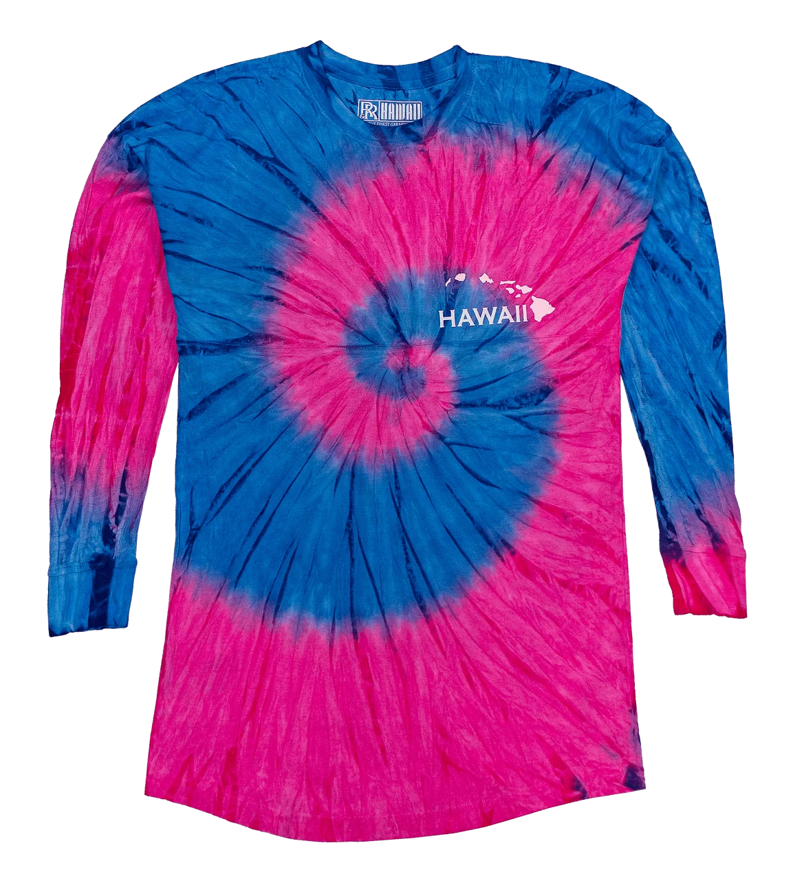 Hawaii Tie Dye UNISEX Long Sleeve Jersey Tee: Pink/Navy