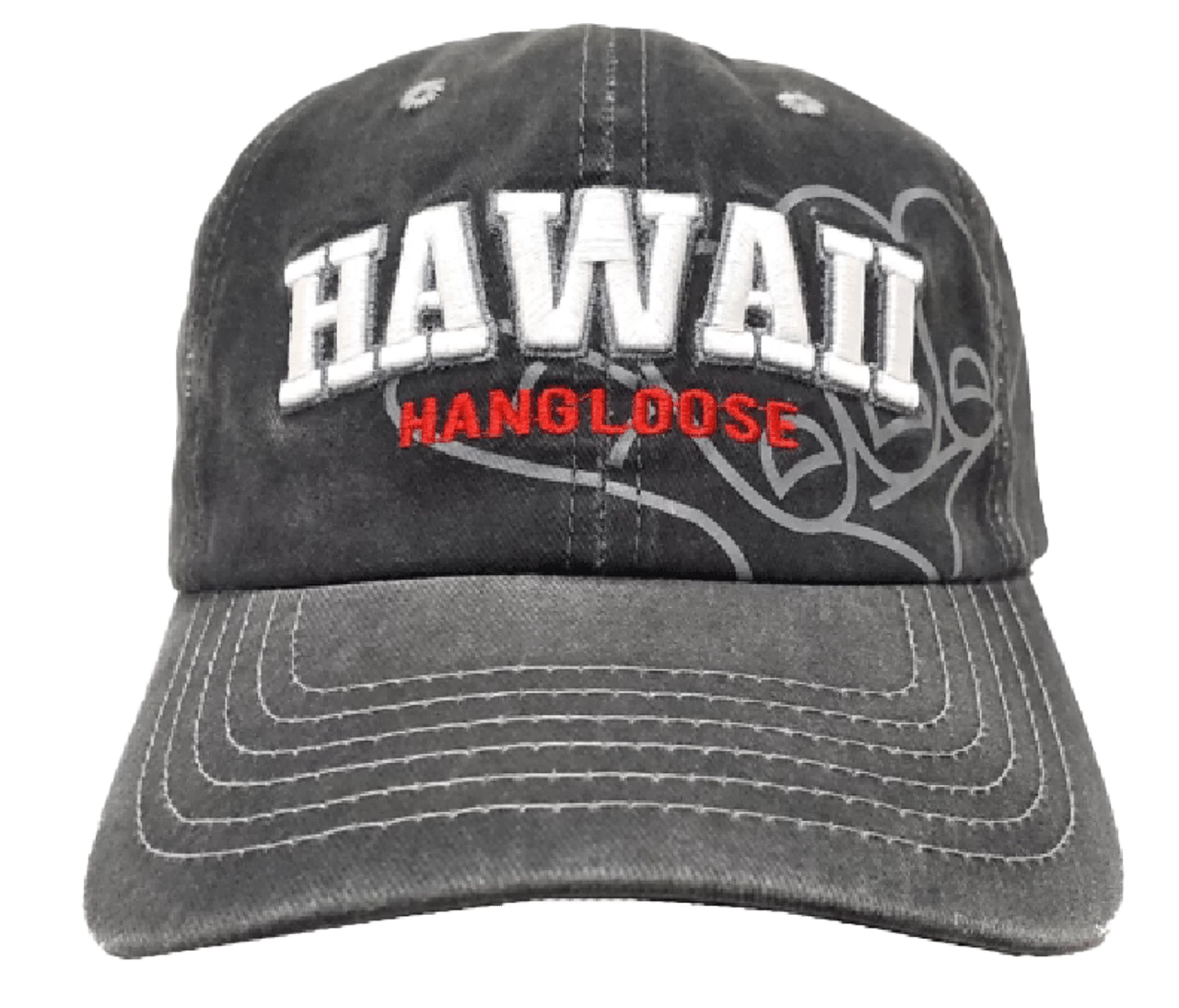 Vintage washed cotton twill frayed bill cap with embroidered Hawaiian design.
