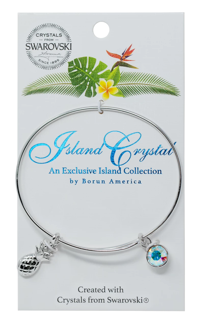 The distinctively certified high quality “Crystals from Swarovski” forged into wearable piece of art brought to you by Borun America. This ABC Stores Exclusive collection of jewelry styles features Hawaiian Island inspired earrings, charm bangle bracelets, and pendants with genuine Swarovski crystals and Swarovski glass gems. Swarovski is synonymous with the highest quality glass crystals today. These beautiful charms are presented on rhodium-plated, nickel-free findings which are a perfect token to remember Hawaii. Perfect island inspired gifts for friends and family.