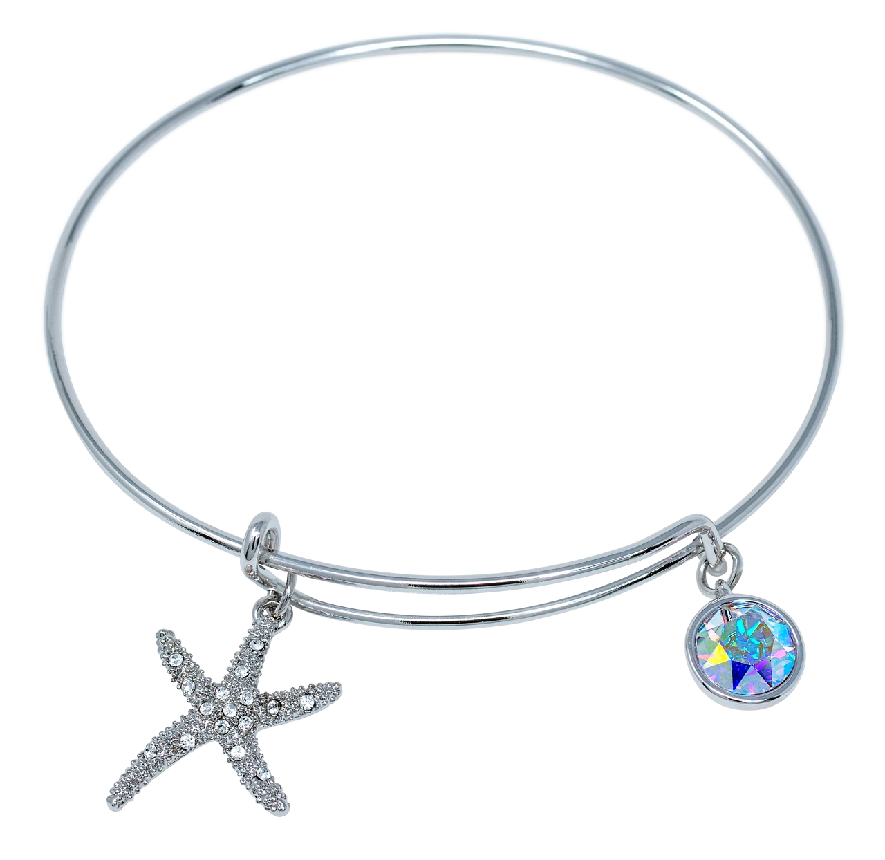 Adjustable wire bracelet adorned with your choice of charm and crystal color.