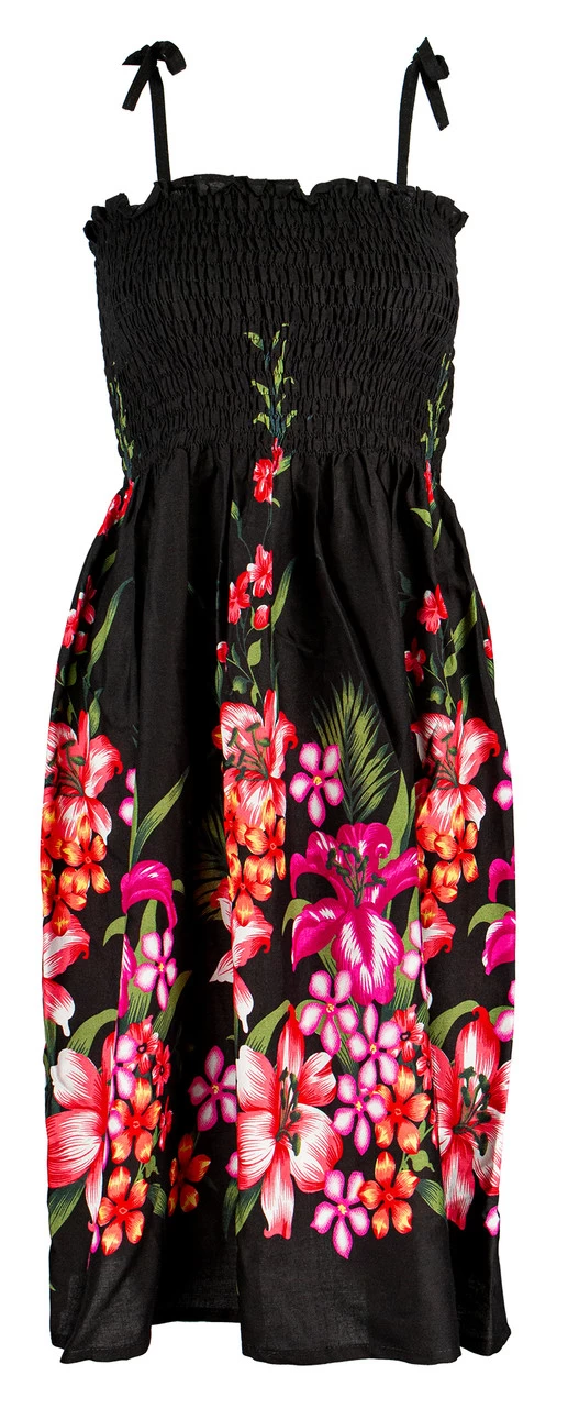 Ladies Short Elastic Tube Dress – Floral Mix: Black