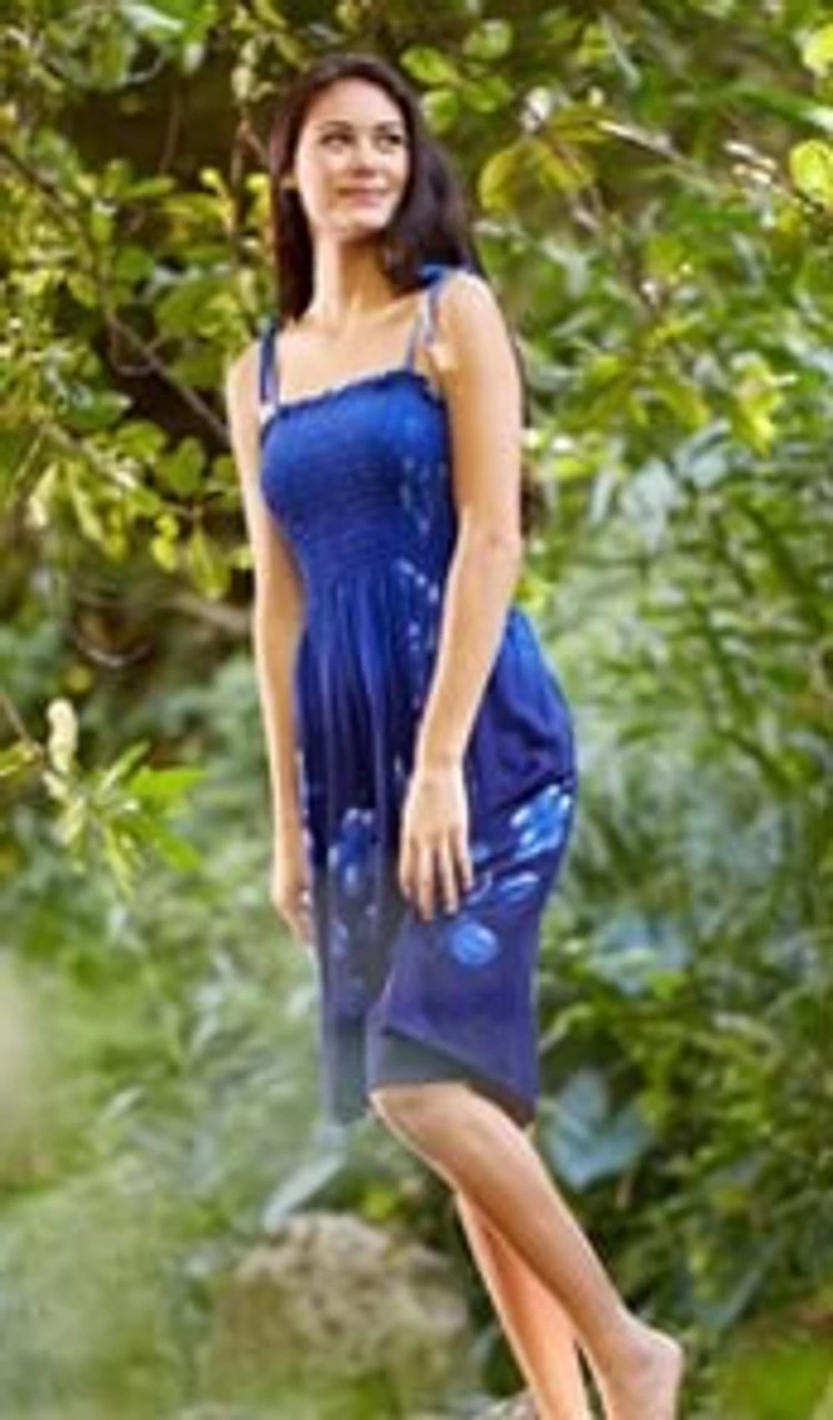 Ladies Short Elastic Tube Dress – Hibiscus Watercolor: Red