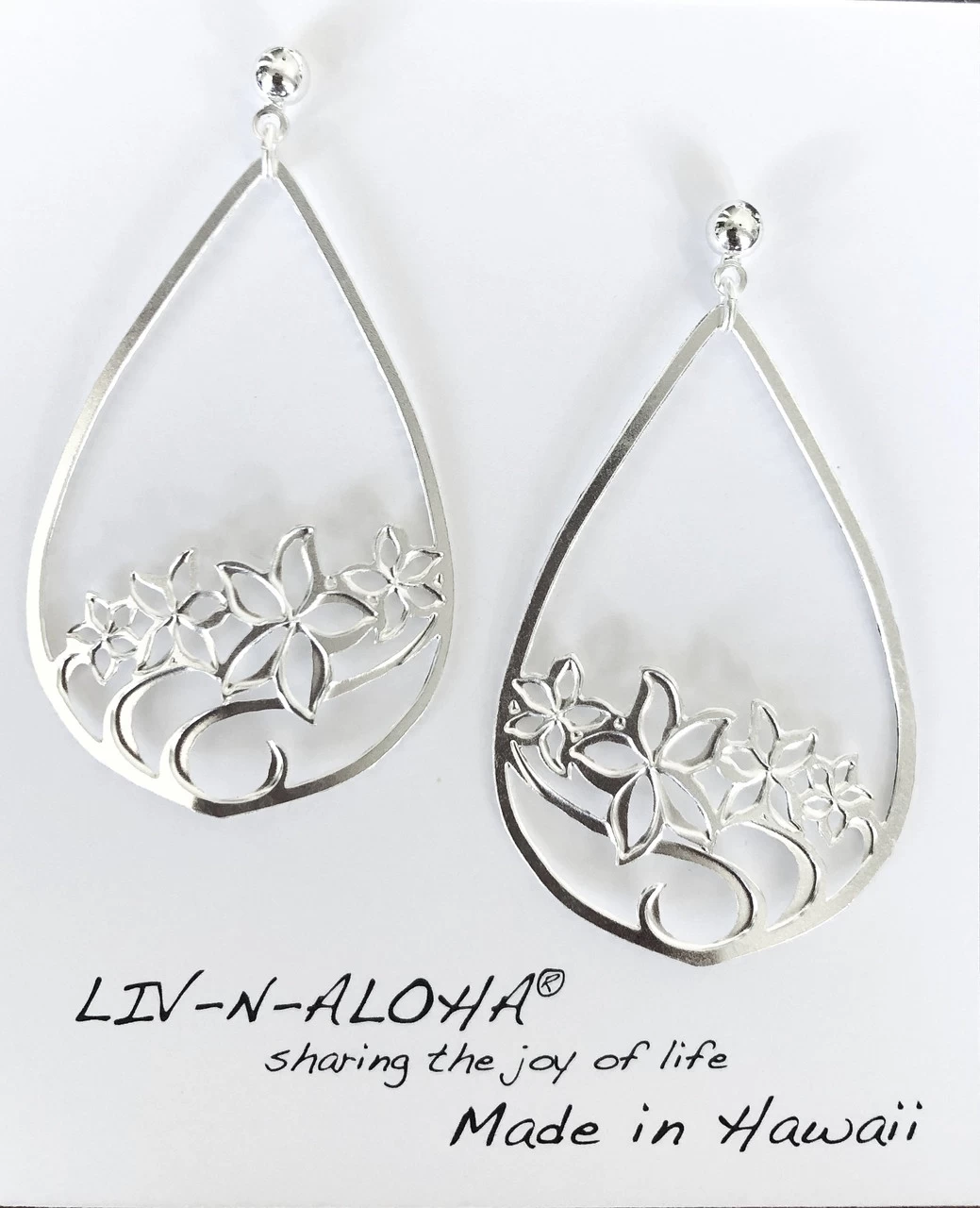 Liv-N-Aloha® Silver Drop Plumeria Earrings