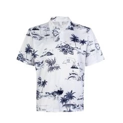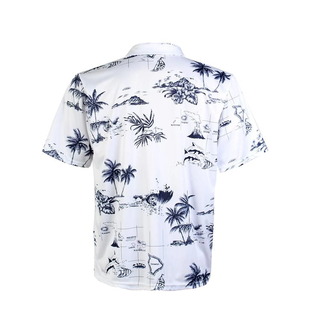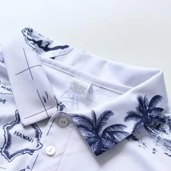 Men’s Microfiber Aloha Polo Shirt – White Map