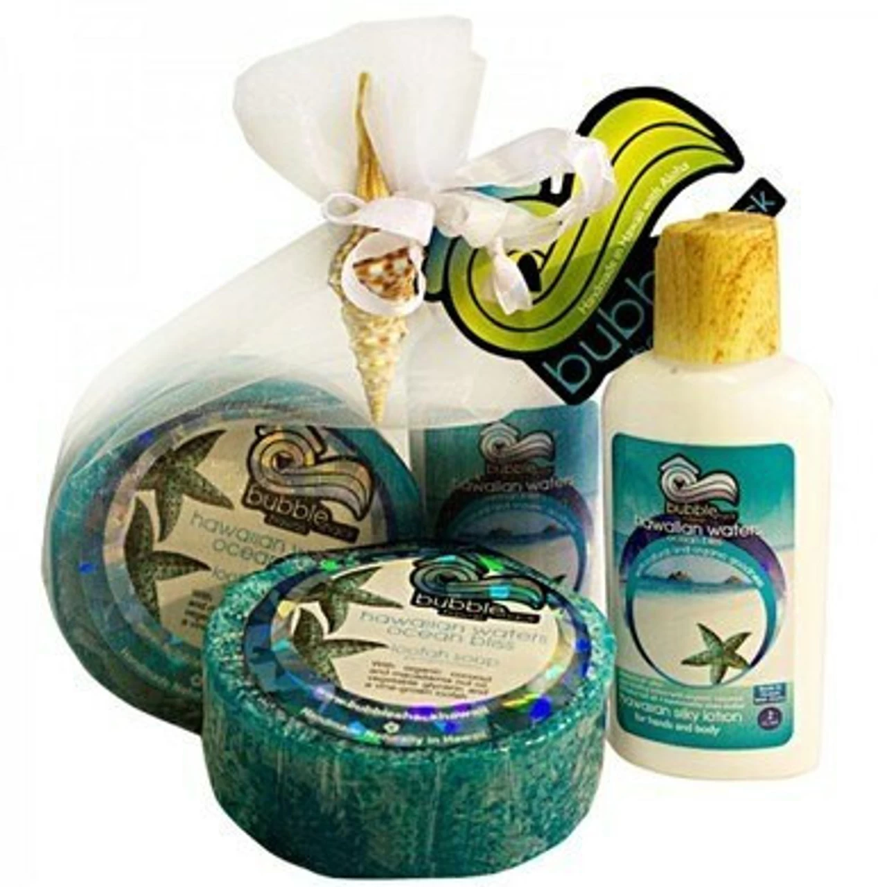 Lotion Ingredients: Purified Water, Organic Aloe Vera, Stearic Acid, Glycerin, Isopropy Palmitate, Hawaiian Kukui Nut Oil, Shea Butter, Glyceral Stearate, Organic Safflower, Vitamin E, Organic Jojoba, Organic Sesame, Vitamin A, Sweet Almond Oil, Organic Sunflower, Organic Green Tea, Polysorbate-60, Sodium Hydroxide, Phenoxyethanol, Bubble Shack’s exclusive fragrance blend of natural and essential oils