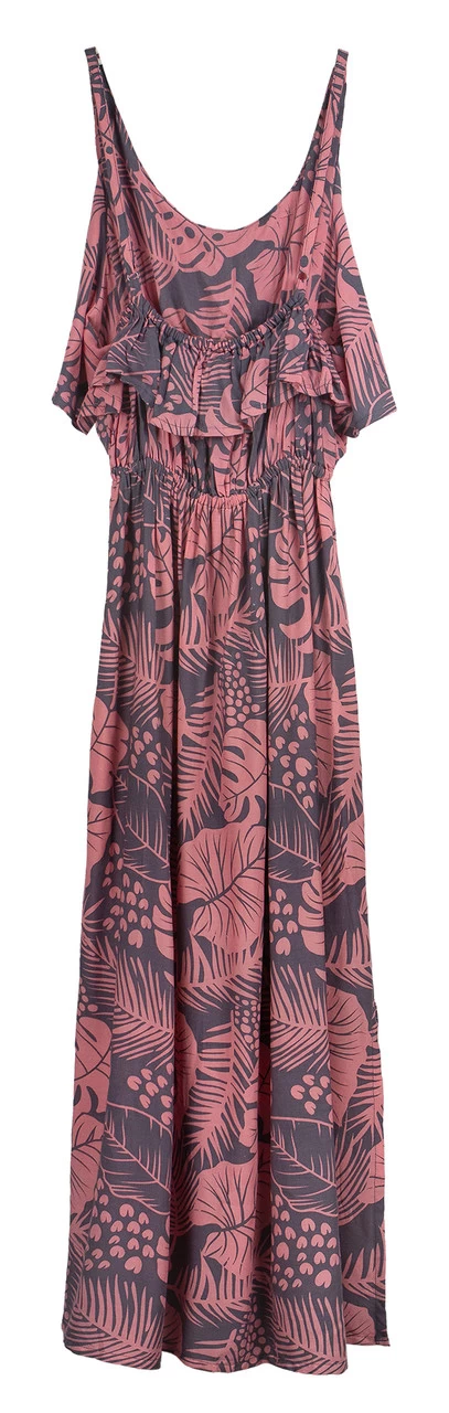 Napua Collection Ruffle Maxi Dress – Monstera Palm: Pink