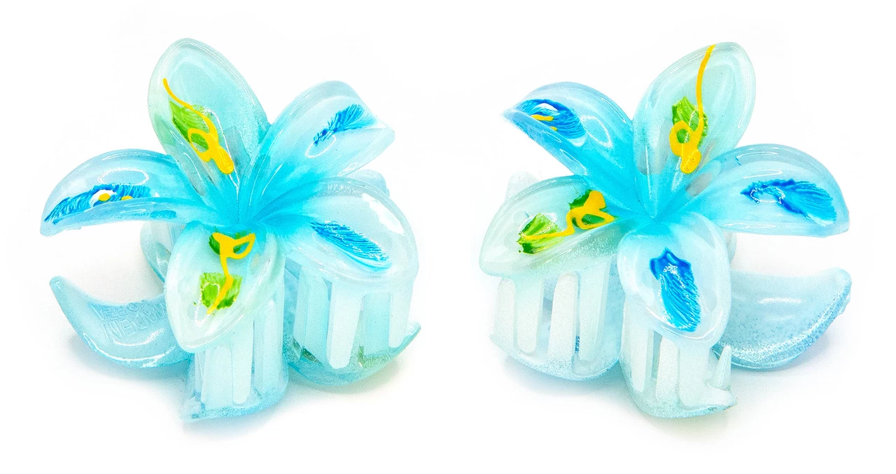 Mini jaw style hair clips with plumeria design and handpainted floral patterns