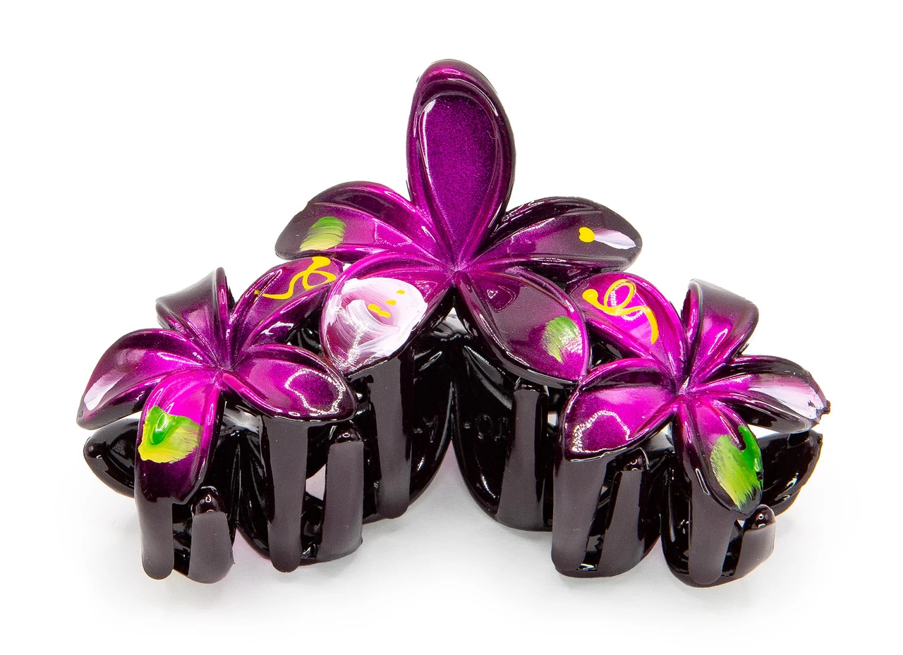 Painted Plumeria Trio Hair Clip: Dark Pink