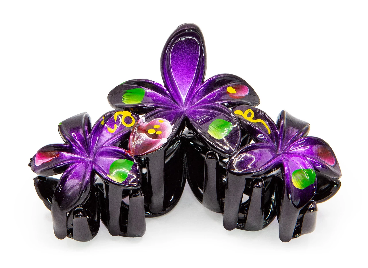 Painted Plumeria Trio Hair Clip: Dark Purple