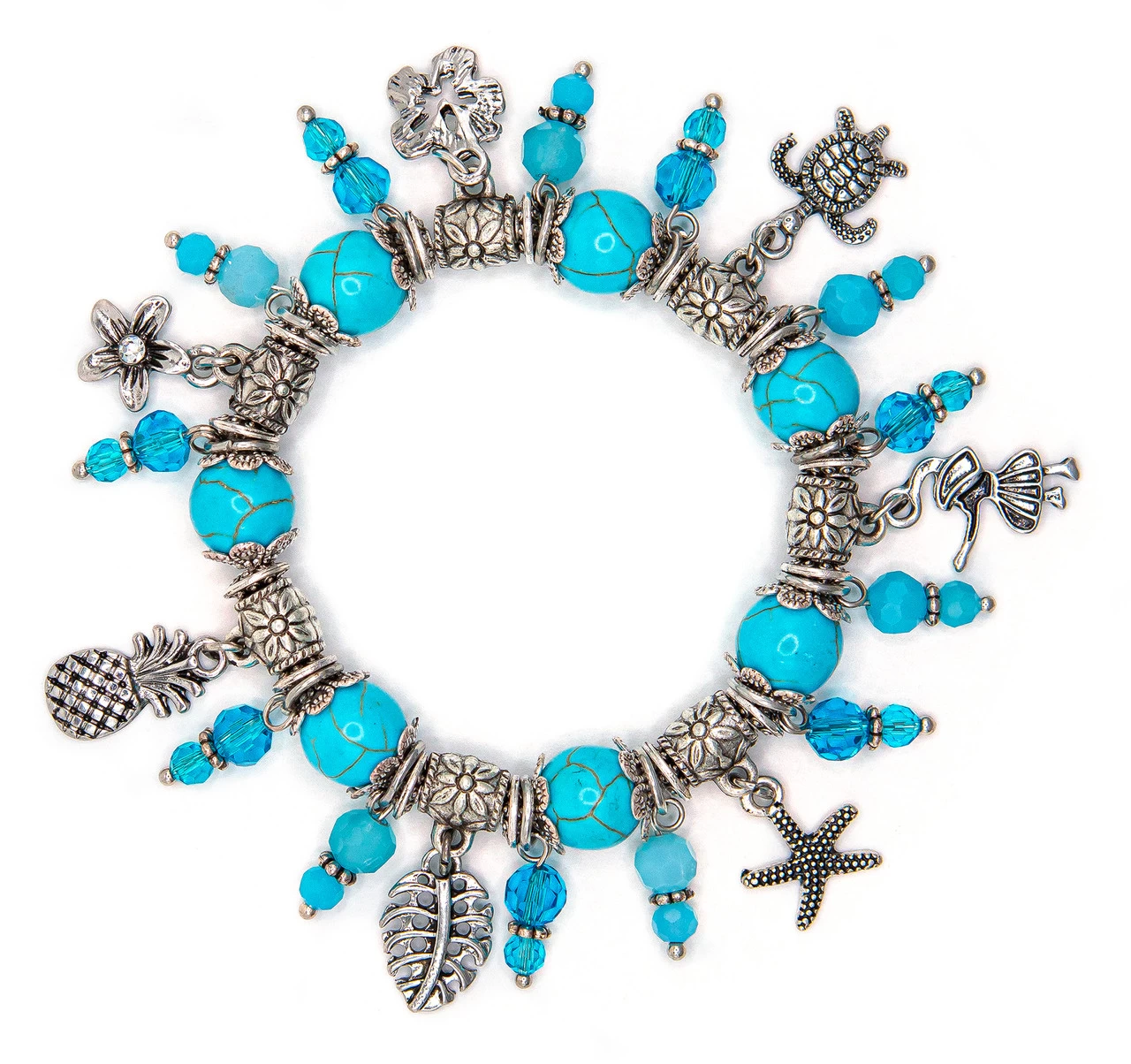 Solid Tone Stone Beads Charm Bracelet By Aloha 808: Aqua