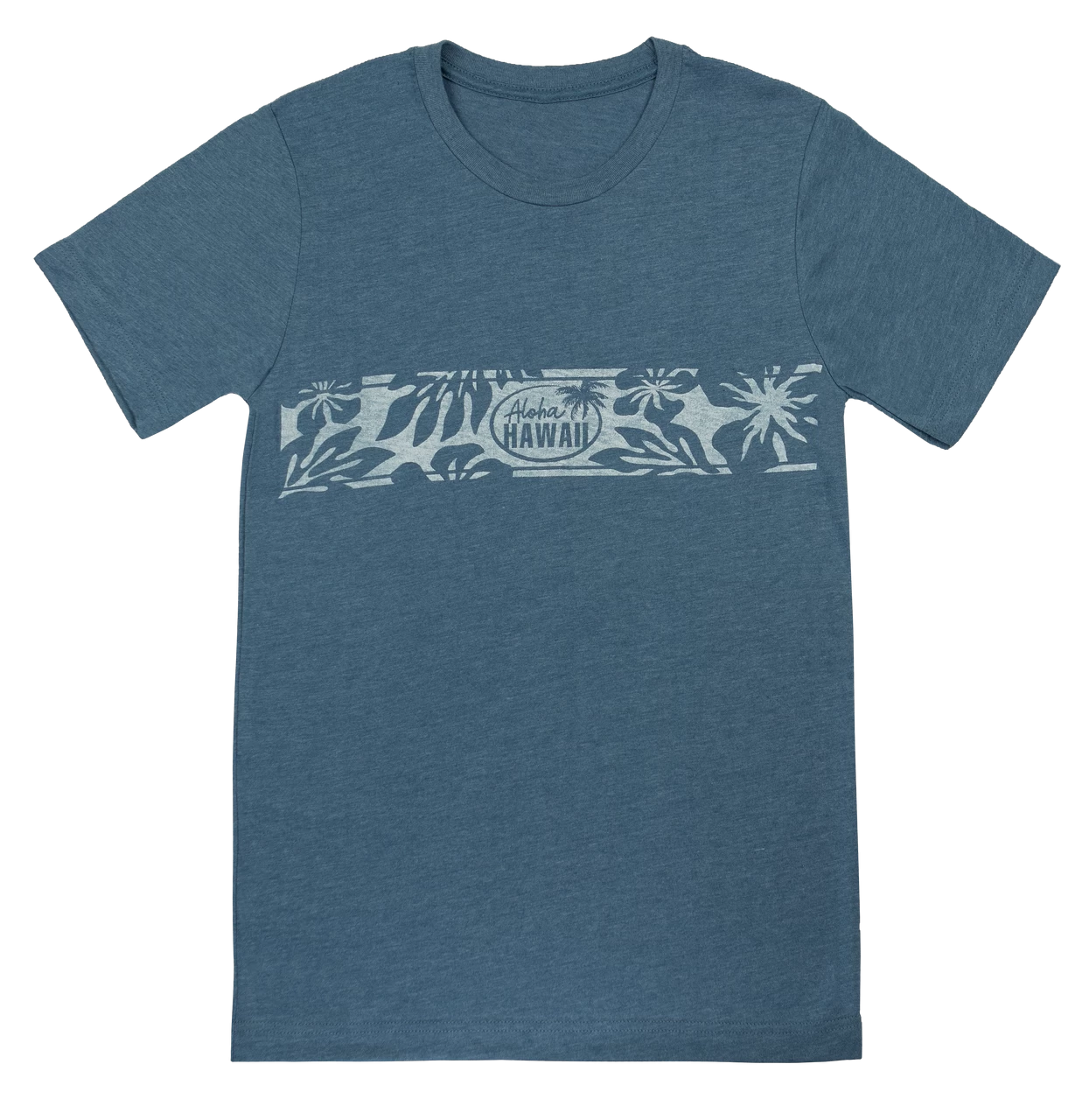 “Aloha Hawaii” in a vintage monstera leaf and hibiscus stylized print.