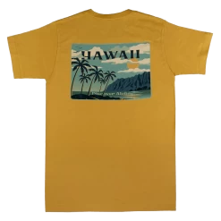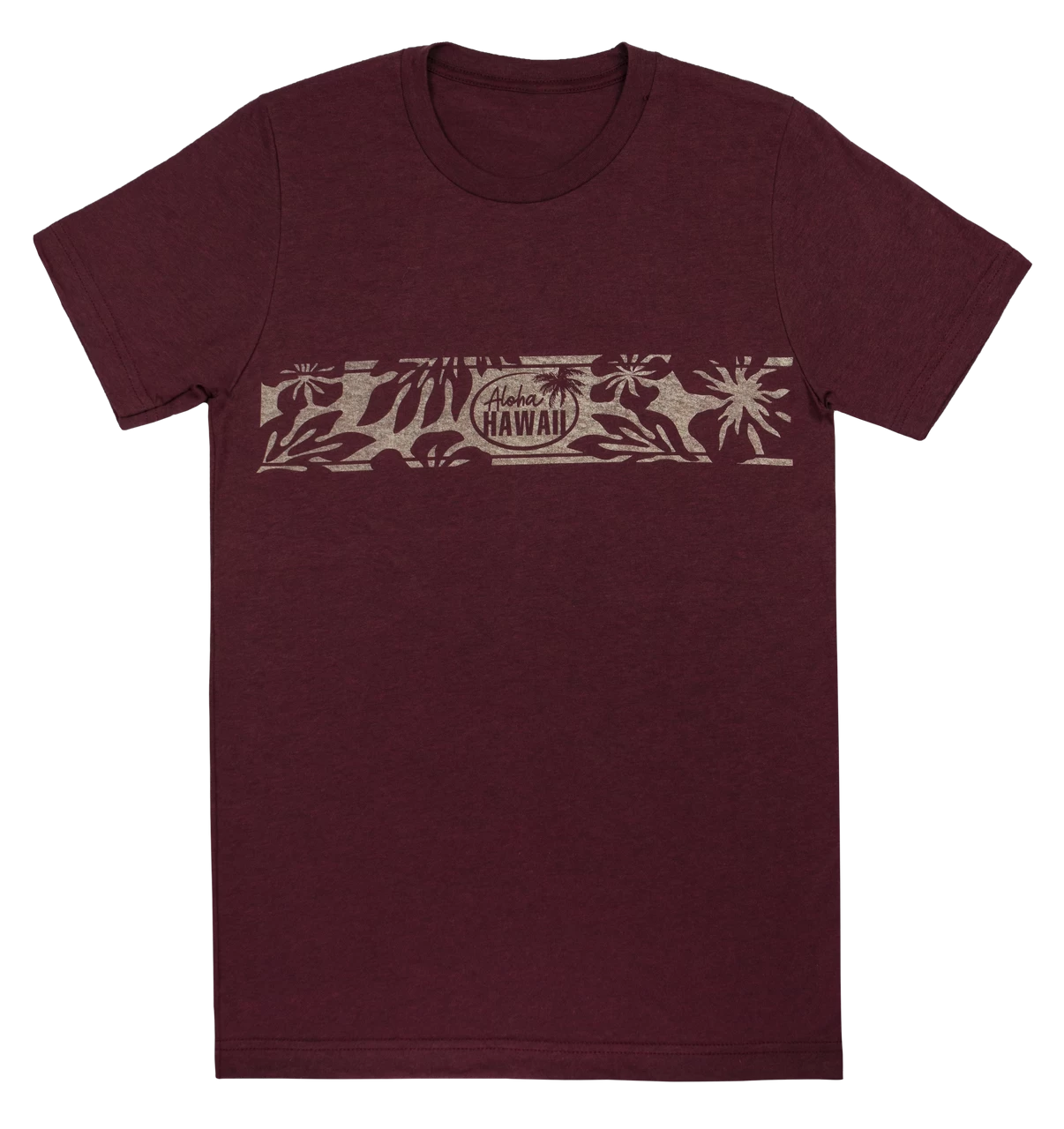 “Aloha Hawaii” in a vintage monstera leaf and hibiscus stylized print.